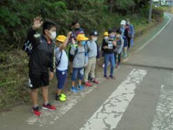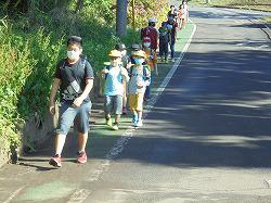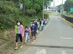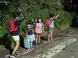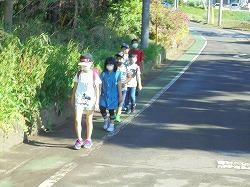 曇り空の涼しい朝でした。登校班の班長が、しっかりと下級生を連れて歩いていました。
