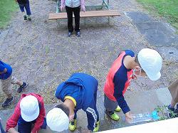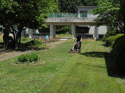 そんな忙しい中、学校のために中庭の芝生の手入れをしてくださっている先生もいました。