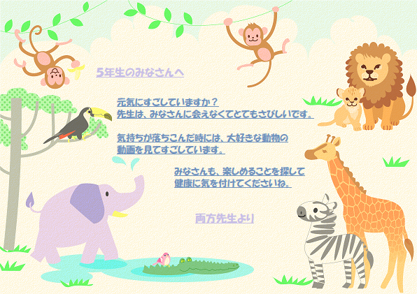 5月の第3週と第4週は、週に1回の設定、第5週は週2回の設定で登校日を設けることになりました。子どもたちの感染防止対策を万全に整えながら、家庭学習の状況を把握したり、心の面のケアを行うことを目的に、本校では登校日を以下のように設定しました。