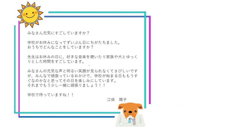 また、本市や本校の感染防止の取組については、今後少しずつ紹介していく予定です。