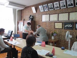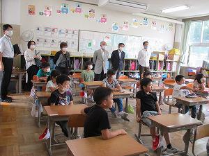 委嘱状をお渡しした後、本校の経営方針や教育課程、PTA活動等について説明をいたしました。今回は、新型コロナウイルス感染症への対応等についても説明をおこない、その後授業を参観し、子どもたちの様子を観ていただきました。