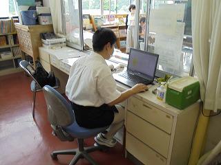 本日は、図書支援員の青木さんが来校して子どもたちのために仕事をしてくださっています。