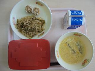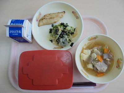 カルシウムを多く含む食材も盛り込まれた献立で、今日は、【ご飯・牛乳・さわらの西京焼き・のり和え・豚汁】でした。食材の風味を生かした美味しい給食でした。