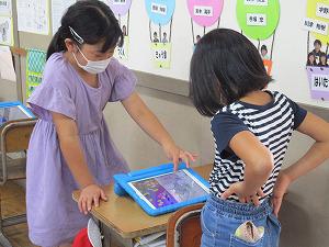 昨日、タブレットを使用して3年生がプログラミング学習を行いました。