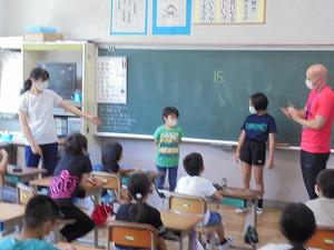 担任の先生が中心になりながら、ALTの先生、支援の先生とともに、笑顔で英語を学んでいます。