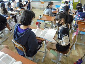 国語で、前回の続きの授業です。「鳥獣戯画を読む」の単元で、読み取りの学習を行いました。