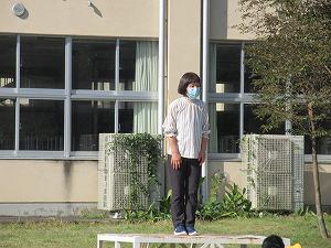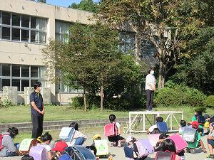 昨日の一斉下校の際、新しい学習指導員の楠先生の紹介を全校児童に行いました。