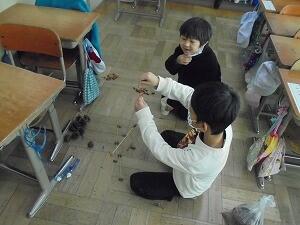 自然の材料を使っての工作です。自分たちでいろいろと工夫しながら制作していました。