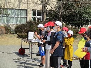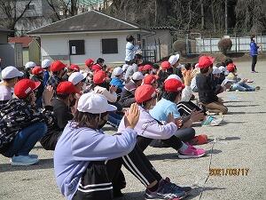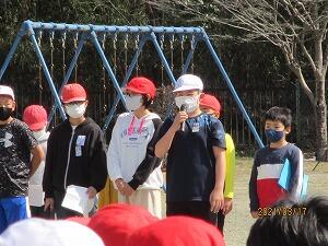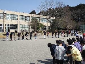 今日のいきいきタイムの時間、明日実施する「6年生とのお別れ式」のリハーサルを校庭で行いました。