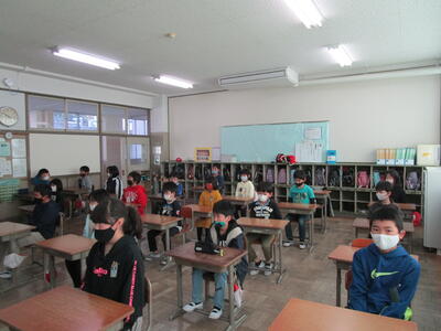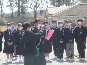 下校時刻が上級生と下級生とでは異なるため、お昼の校内放送でお別れの式を行いました。