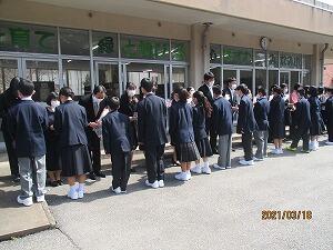 卒業式の後は、昇降口で、卒業生が主体となった「先生方と保護者への感謝の会」が行われました。