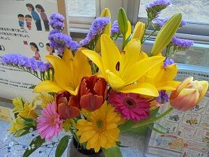 校舎内には、卒業式で飾られていた華やかな花々が、玄関前を彩っています。