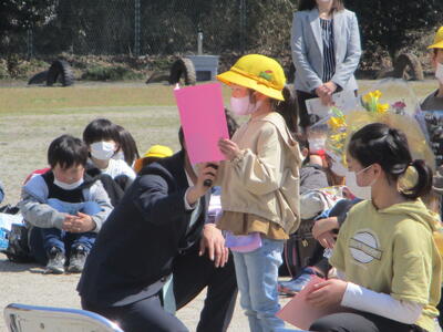 在校生(代表児童)が、卒業生に対して感謝の気持ちを伝えました。