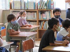 先生の話に集中して、しっかり学習している1年生です。