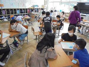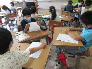 4年生は、「水害がおきた時の活動」について、各自がノートにまとめていました。
