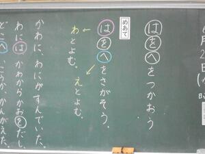「は を へ をつかおう。」というねらいで学習をしていました。