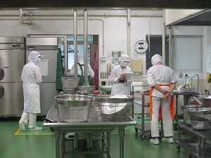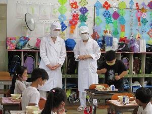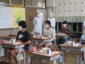 調理室で給食を作っている様子、各教室での配膳や食事の様子、給食関係の書類等について見ていただきました。