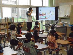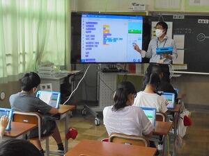 本日は、ICT活用アドバイザーの永山先生が来校され、教員や子どもたちにプログラミング教育についての指導をしてくださいました。
