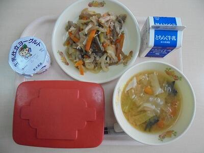 今日の給食の献立は、【ごはん・牛乳・肉丼の具・キャベツの味噌汁・ヨーグルト】でした。