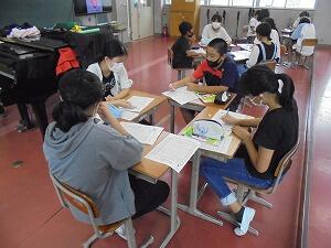 「ボイスアンサンブル」という学習で、グループごとに考えたリズムと声を発表し合う学習です。