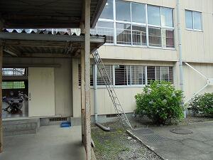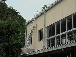 連日の雨で雨漏りがしていましたが、今日は、鹿沼市教育委員会の作業班の皆さんが修繕をしてくださっています。