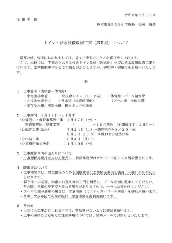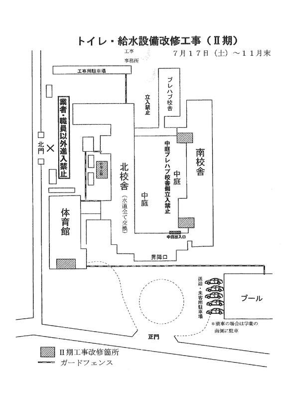 今週の土曜日から、トイレ改修Ⅱ期工事が始まります。7月17日(土)から11月末までの工事となります。