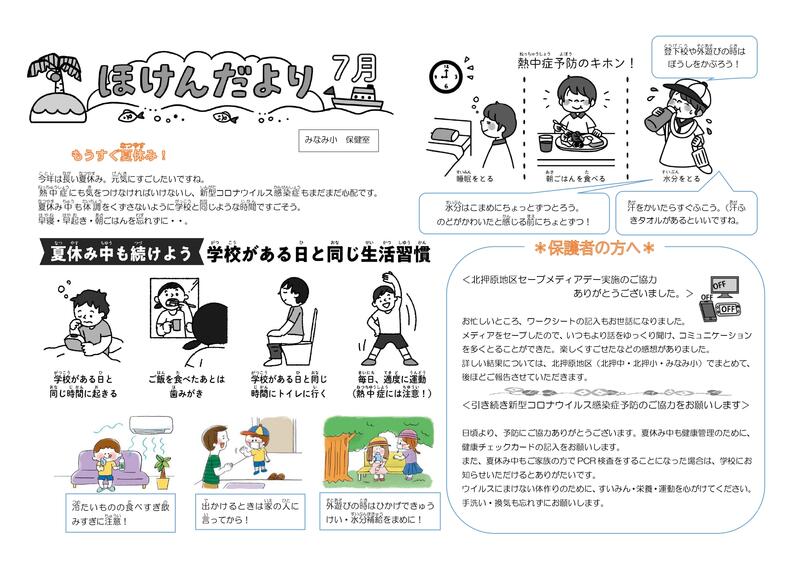 第1学期終業式は、校内放送にて行い、児童は各教室の涼しい環境の中で、式に参加しました。