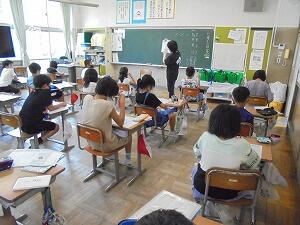 給食後の5時間目。どの教室でも落ち着いて学習に取り組んでいます。