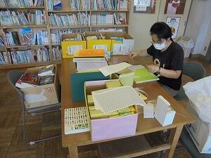夏休みの図書の貸出しに向けて、新刊本の受け入れや、1学期の読書量の集計などの仕事に一生懸命に取り組んでくださっています・・