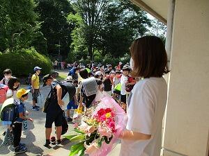 小磯先生からお別れの挨拶、児童代表お礼の言葉、花束贈呈(放送室にて)、などを放送にて全校児童に伝えました。