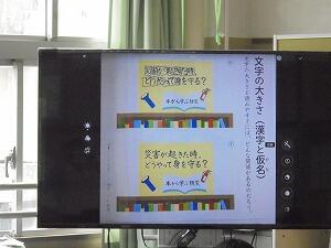 三文字の言葉について、タブレットを活用しながら学習していました。