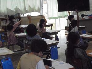「ちいちゃんのかげおくり」の単元です。先生からの問いに対して、みんなしっかりと考え応えていました。