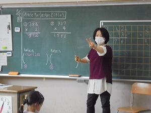 3年生の算数では、三位数のかけ算の仕方について学習していました。