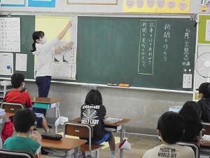 「ちいちゃんのかげおくり」の単元です。先生からの問いに対して、みんなしっかりと考え応えていました。