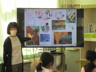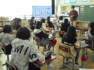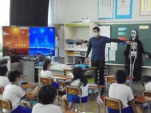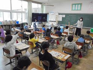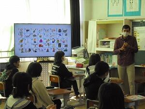 3時間目、4年生はALTのビビロ先生と英語の学習をしています。