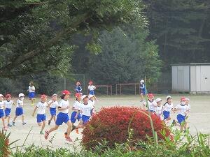 12月1日の校内持久走大会に向けて、体育の時間に各学年で試走を行っています。