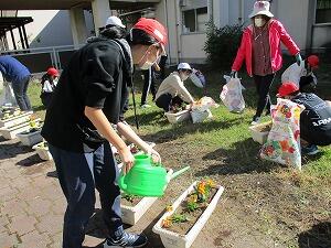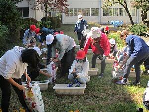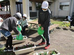 さすが6年生、手際よくきれいにプランターに植え替えてくれました。
