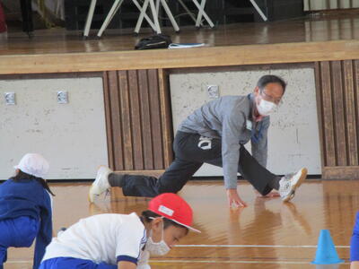 体力向上エキスパートティーチャーの和氣邦夫先生を講師にお招きして、体育の授業を行いました。