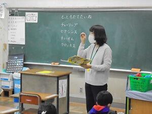 1年生が、生活科の時間に「もっと そだてたいね。」というテーマで、理科的な学習をしていました。