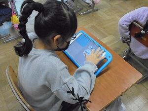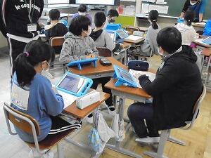 タブレットを活用して、資料【データ】を読み取る学習をしています。