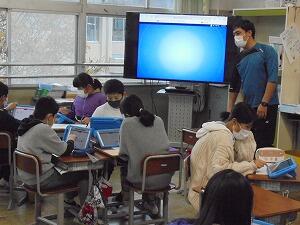 先生の指示をしっかり聞いたり、黙々と調べ学習を進めたりと、私語もなくしっかりと取り組んでいます。