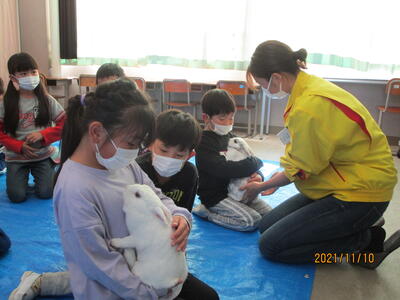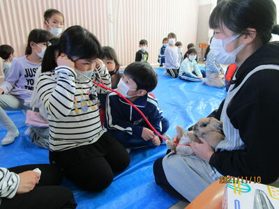 本日は、宇都宮動物園 うさぎの担当者様と3羽のうさぎさんをお迎えして、抱っこしたり、聴診器で心音