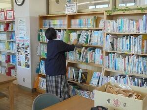 図書室の環境を整えたり、貸し出し業務など行ってくれています。今日は、委員会活動の日なので、図書委員会の児童とも一緒に活動してくれています。