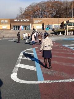 晴天の下、笑顔でバスに乗り込み、ツインリンク茂木などを楽しく見学してきました。