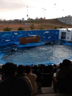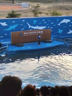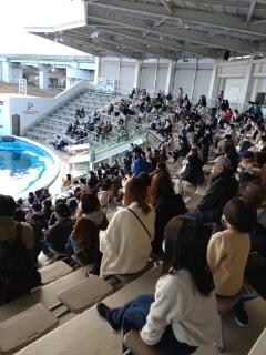 本日最後の見学先、うみの杜水族館でショーを見た後、館内をグループごとに見学しています。