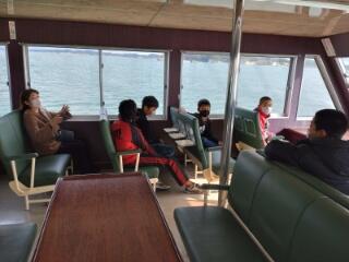 現在は、松島湾の遊覧をしています。松島港を出発し50分かけて塩釜港に向かいます。