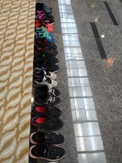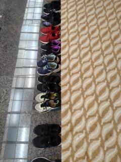 修学旅行でも、校内で心掛けている「靴をそろえる」を実践していました。