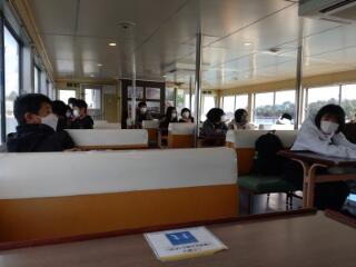 現在は、松島湾の遊覧をしています。松島港を出発し50分かけて塩釜港に向かいます。