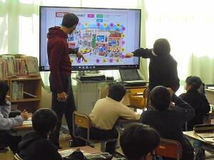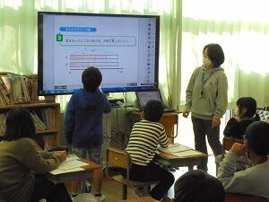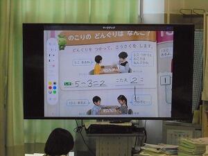 大型ディスプレイに映し出された問題の解き方について、積極的に自分の考えを述べて説明していました。