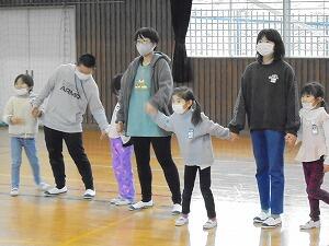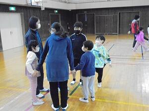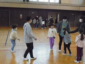 体育館で、ゲームの要素を取り入れた追いかけっこをしていました。